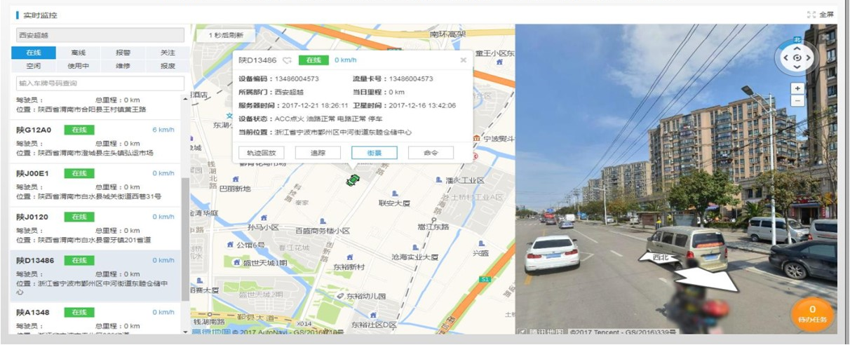 車輛位置實時查看、軌跡回放、街景查看、設(shè)備命令下發(fā)